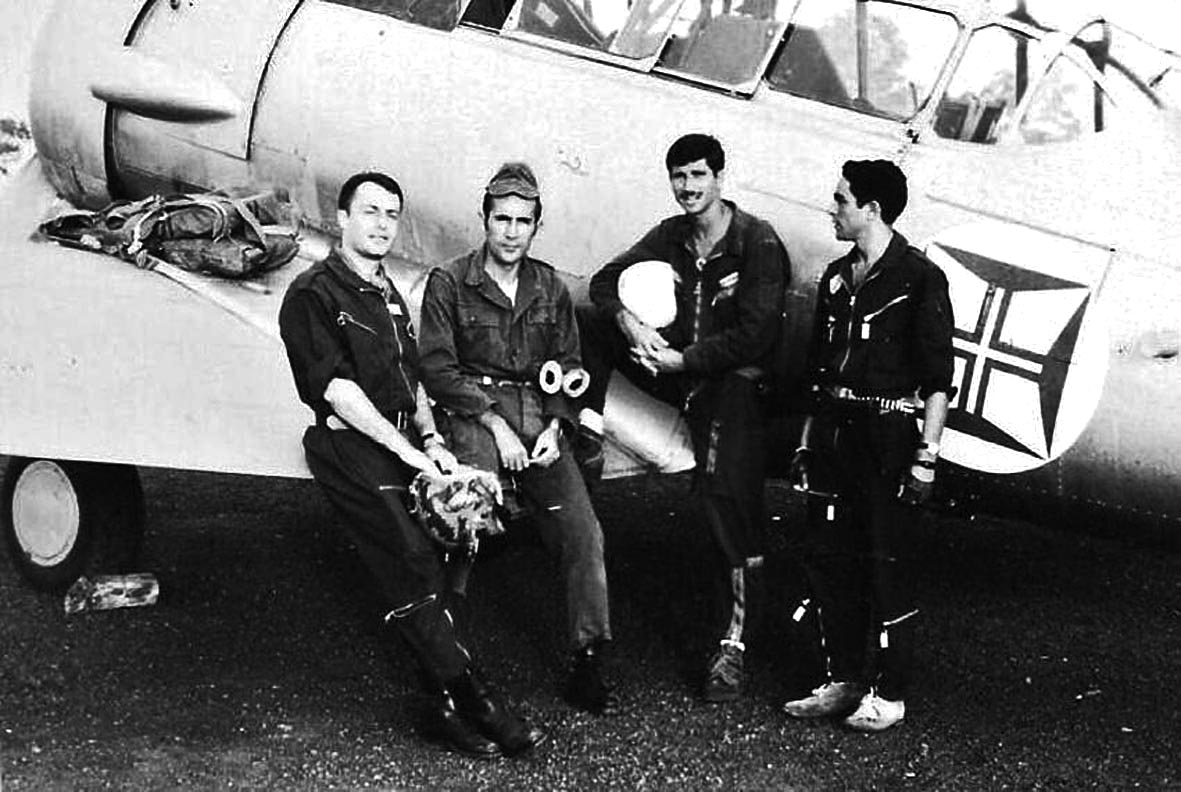 Este, acabado de chegar da Metrópole (Portugal Continental) após o curso de piloto miliciano, na sua 1.ª missão que poderia ser de combate. mas num avião sem rádio!