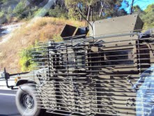 Subindo o Monsanto, o Hummer, da nossa Polícia Aérea, vai à cidade.